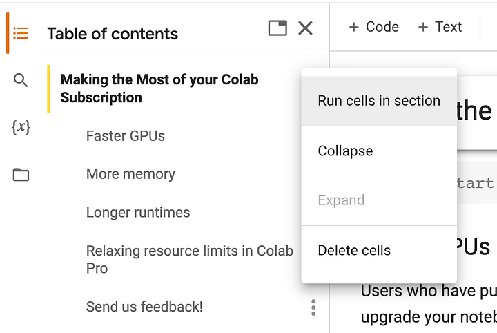 - 편집 -> 노트북 설정( 게시물 ) 에서 첫 번째 셀이나 섹션을 자동으로 실행하는 옵션이 추가되었습니다.